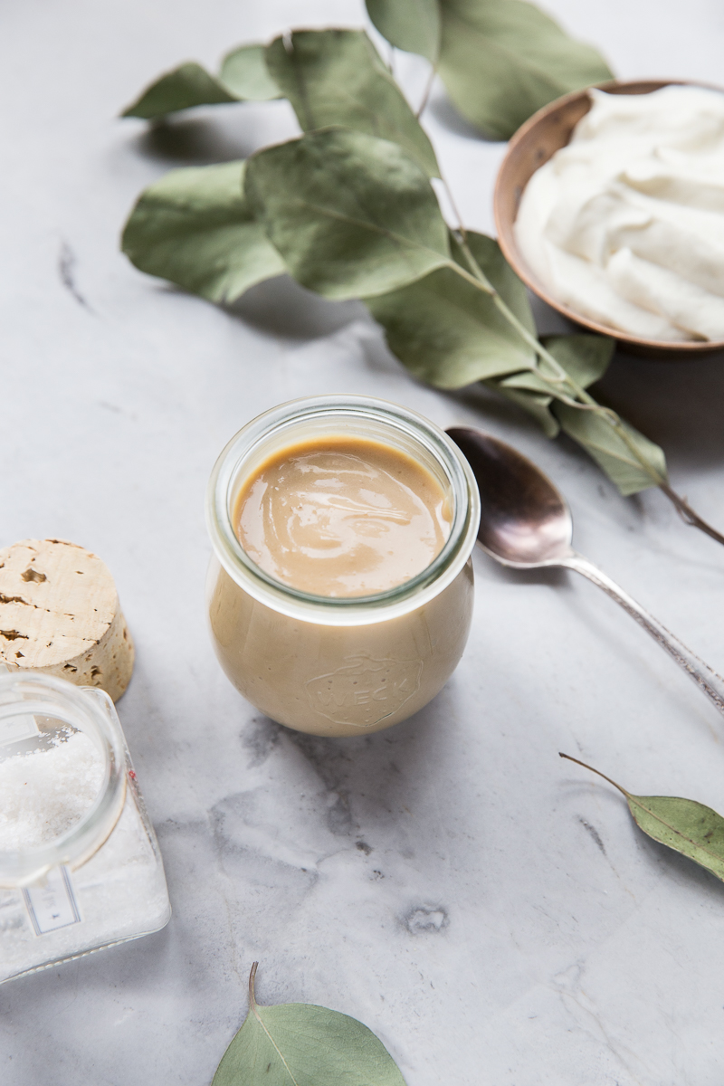 In a medium saucepan over medium heat, melt butter. Add brown sugar and use a spatula to stir constantly until brown sugar melts. Slowly add in warm milk, it may spatter a little when it hits the pan so add carefully. Use a wire whisk to continually stir in the milk. Add in the salt.